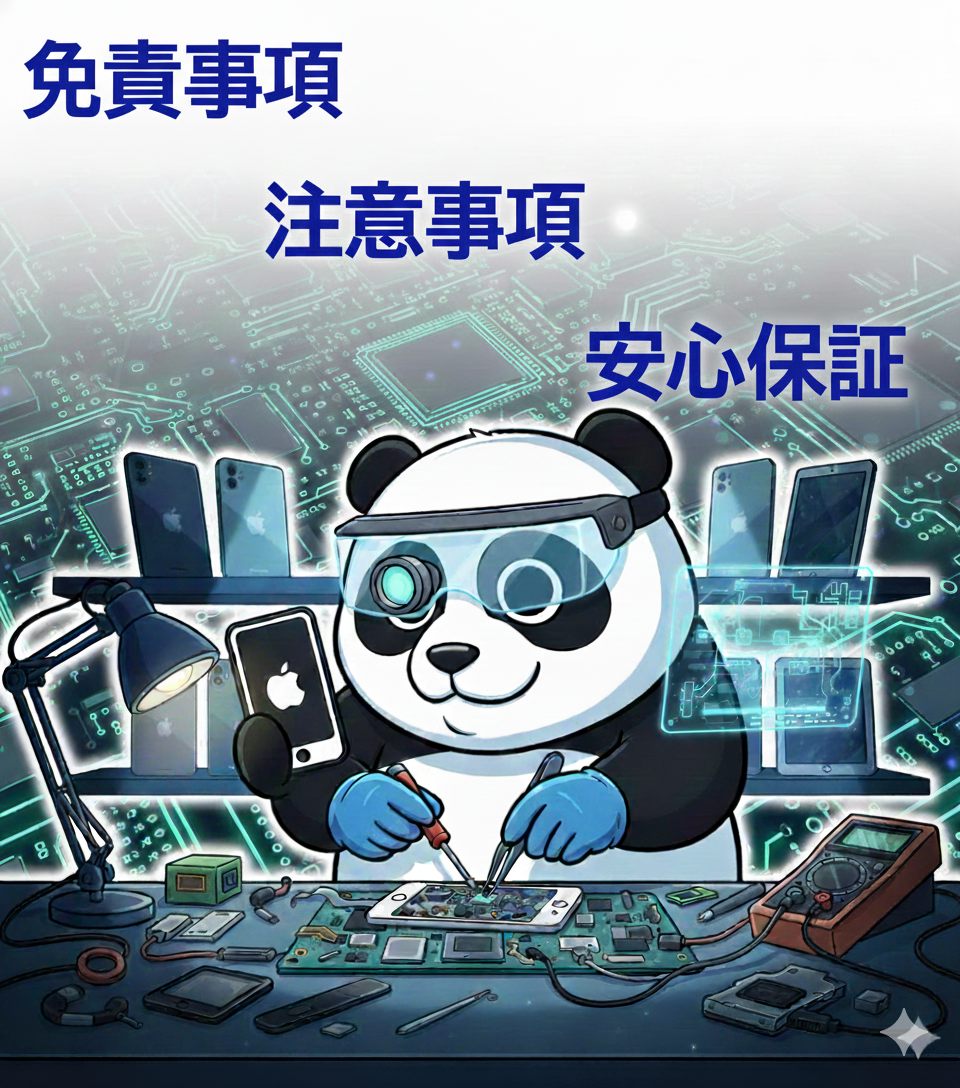 ●端末の修理、設定作業に伴い、作業との関係性のない箇所に不具合が発生した場合、弊社では一切の責任を負いかねます。